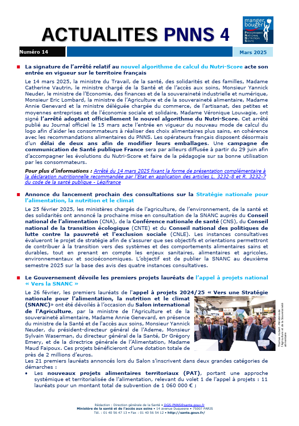 - La signature de l'arrêté relatif au nouvel algorithme de calcul du Nutri-Score acte son entrée en vigueur sur le territoire français
